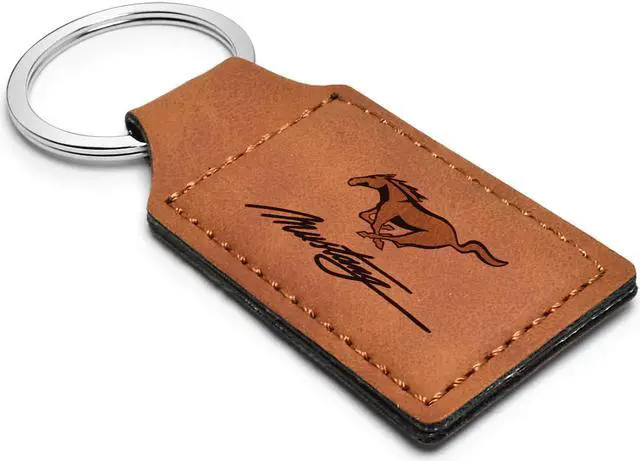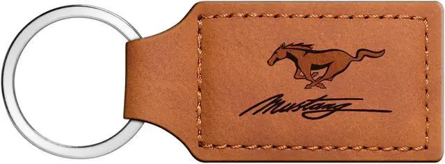 Ford Mustang Script Rectangular Brown Leather Key Chain