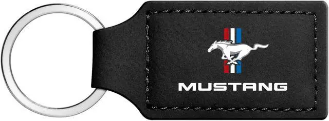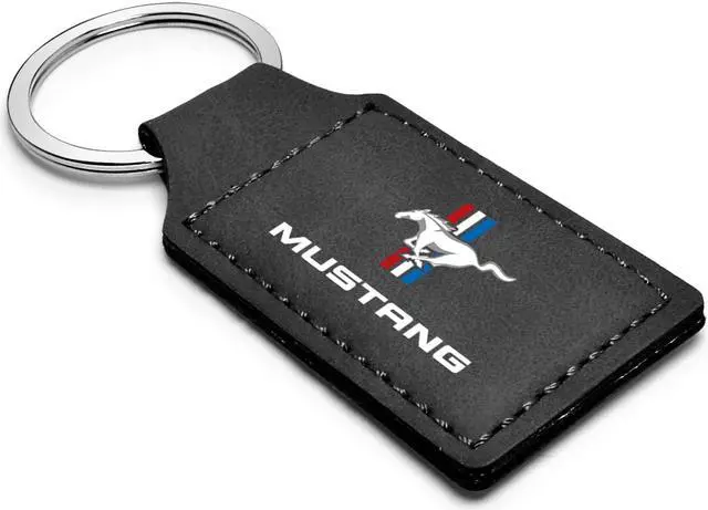 Ford Mustang Tri-Bar Rectangular Black Leatherette Key Chain