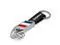Fashion with style. One piece design has elegant look from every angle. Top grade soft real black carbon fiber stripe, genuine leather cover edge. Full-color UV resistant OEM style car logo graphic on one side. The chrome metal finish block with red white blue stripes for sports look. Carabiner style snap hook help key for easy attach and release.