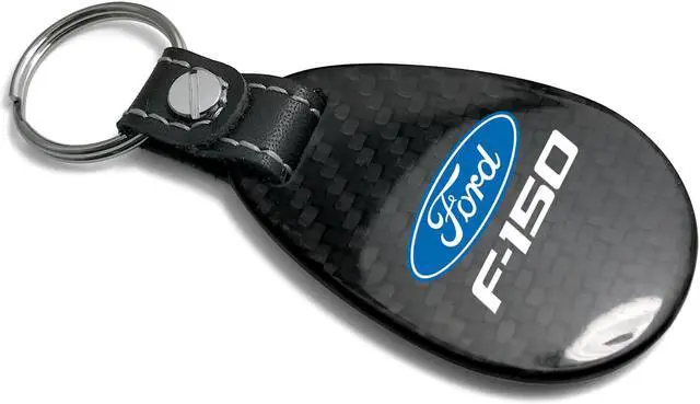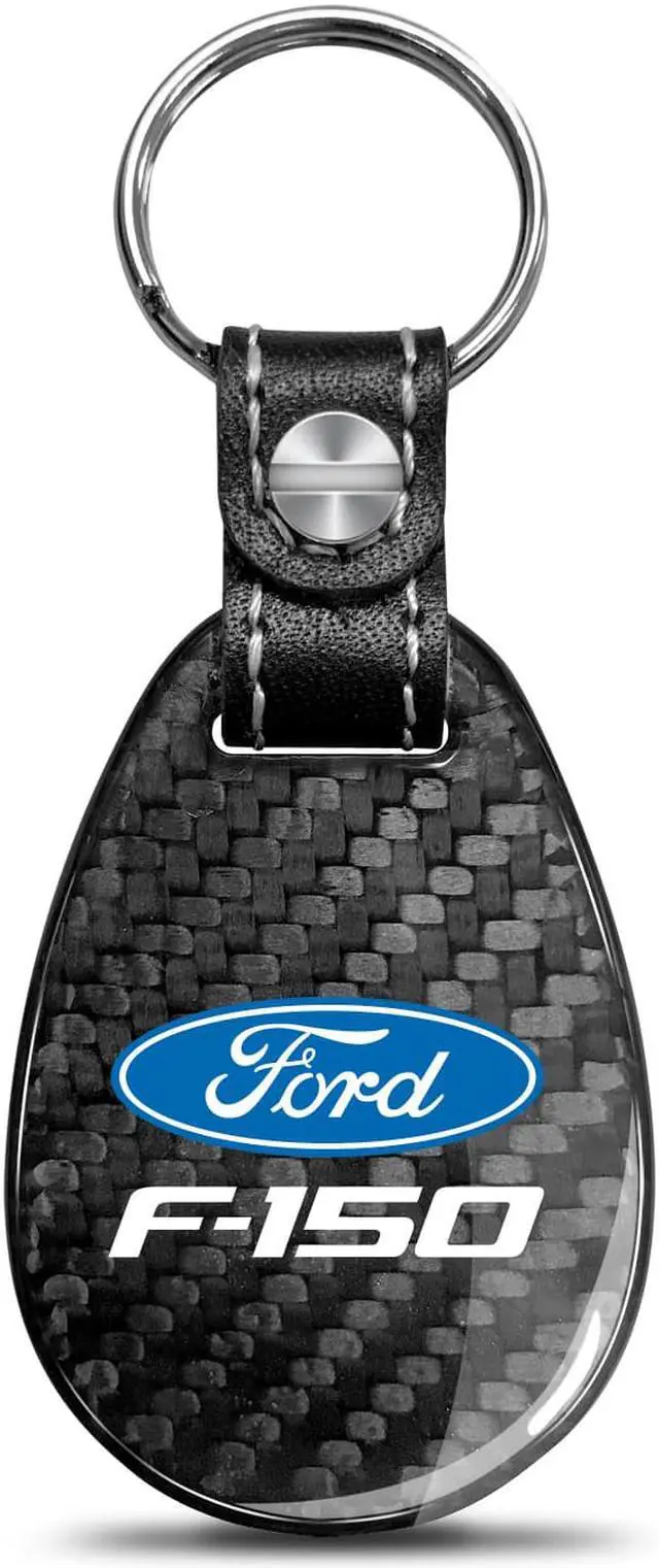 Ford F-150 Real Black Carbon Fiber with Leather Strap Large Tear Drop Key Chain
