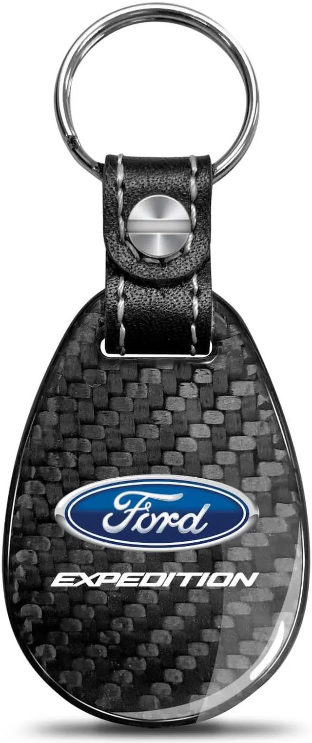Ford Expedition Real Black Carbon Fiber with Leather Strap Large Tear Drop Key Chain