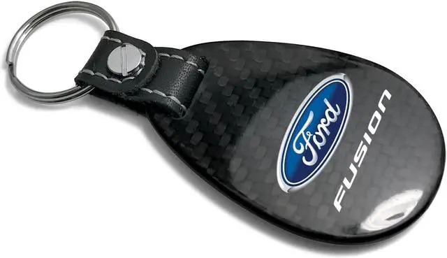 Ford Fusion Real Black Carbon Fiber with Leather Strap Large Tear Drop Key Chain