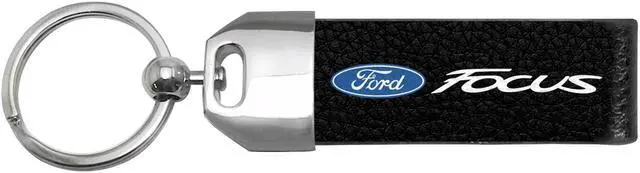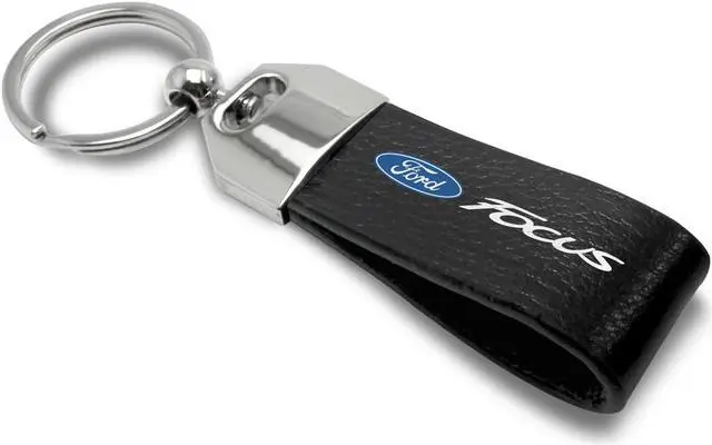 iPick Image - Large Genuine Black Leather Loop Strap Key Chain - Ford Focus