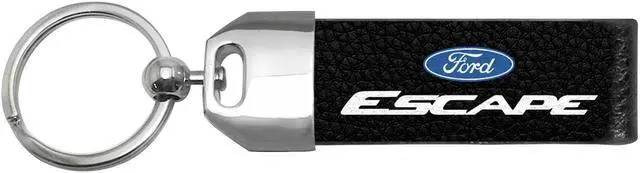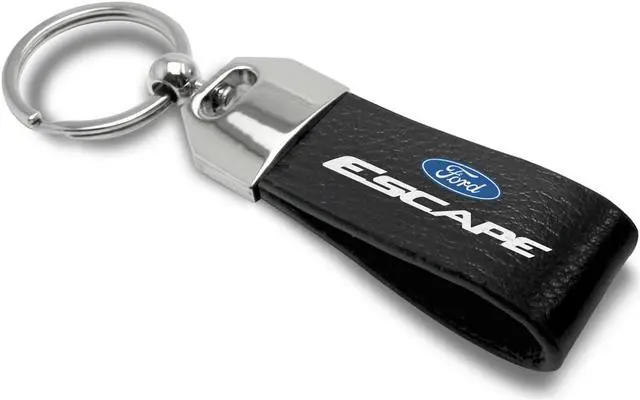 Fashion with style. One piece design has elegant look from every angle. Top grade soft black leather strip has full-color UV resistant OEM style car logo graphic. Chrome metal finish block has key rings for easy attach and release keys.