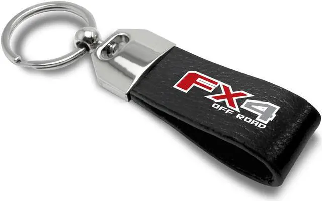 Fashion with style. One piece design has elegant look from every angle. Top grade soft black leather strip has full-color UV resistant OEM style car logo graphic. Chrome metal finish block has key rings for easy attach and release keys.