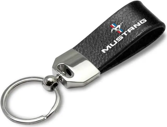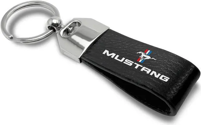 Ford Mustang Tri-Bar Large Genuine Black Leather Loop Strap Key Chain