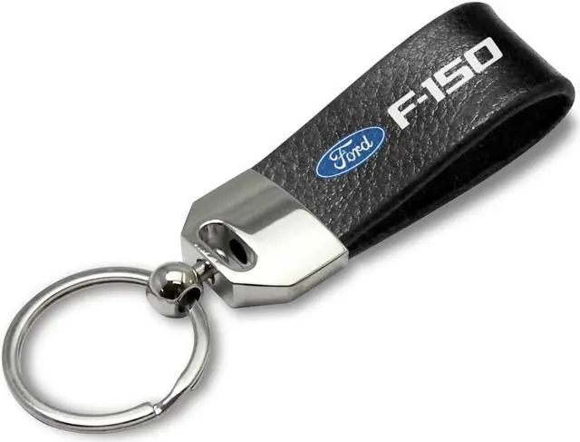 Fashion with style. One piece design has elegant look from every angle. Top grade soft black leather strip has full-color UV resistant OEM style car logo graphic. Chrome metal finish block has key rings for easy attach and release keys.