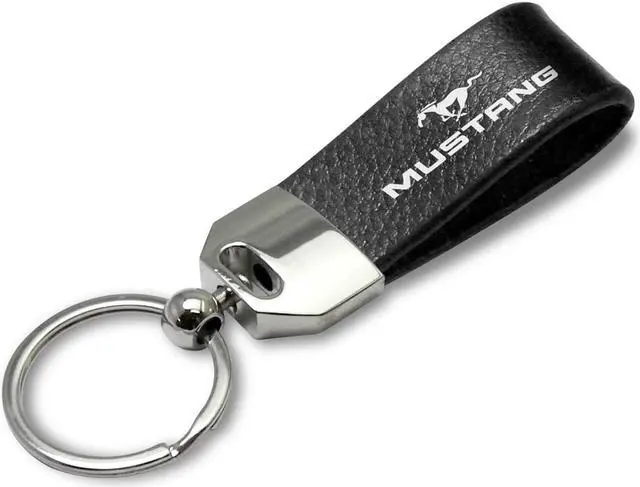 Ford Mustang Large Genuine Black Leather Loop Strap Key Chain