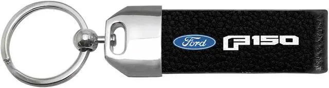 Fashion with style. One piece design has elegant look from every angle. Top grade soft black leather strip has full-color UV resistant OEM style car logo graphic. Chrome metal finish block has key rings for easy attach and release keys.