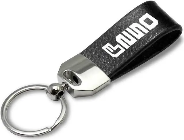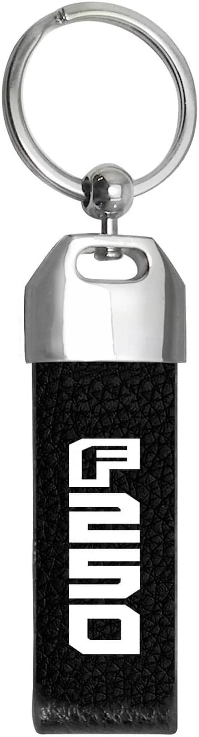 Fashion with style. One piece design has elegant look from every angle. Top grade soft black leather strip has full-color UV resistant OEM style car logo graphic. Chrome metal finish block has key rings for easy attach and release keys.