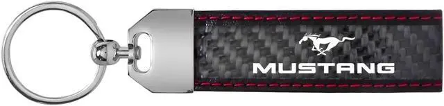 Ford Mustang Real Black Carbon Fiber Loop Strap Key Chain with Red Stitching