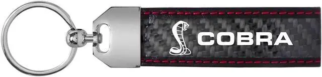 Ford Mustang Cobra Real Black Carbon Fiber Loop Strap Key Chain with Red Stitching
