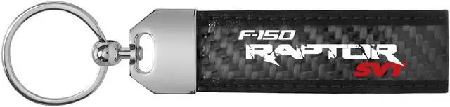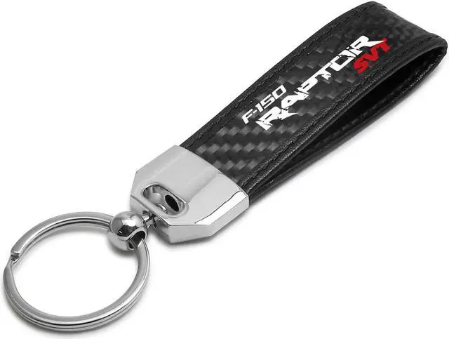 Ford F-150 Raptor SVT Real Carbon Fiber Leather Strap Key Chain with Black stitching