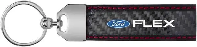 Ford Flex Real Black Carbon Fiber Loop Strap Key Chain with Red Stitching