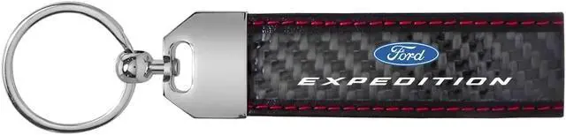 Ford Expedition Real Black Carbon Fiber Loop Strap Key Chain with Red Stitching