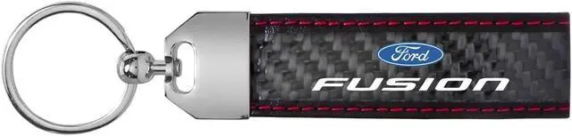 Ford Fusion Real Black Carbon Fiber Loop Strap Key Chain with Red Stitching