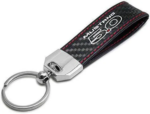Ford Mustang 5.0 Real Black Carbon Fiber Loop Strap Key Chain with Red Stitching
