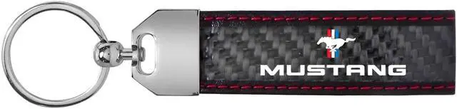 Ford Mustang Tri-Bar Real Black Carbon Fiber Loop Strap Key Chain with Red Stitching