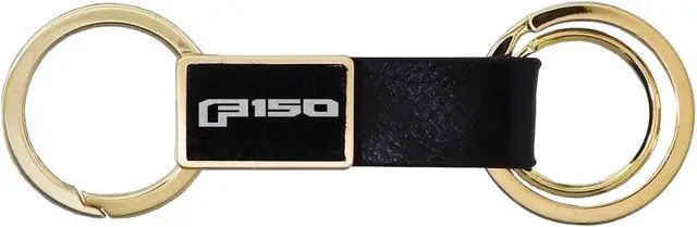 Fashion with style. One piece design has elegant look from every angle. Golden steel block with soft real black leather insert. It has full-color UV resistant OEM style car logo graphic. Black leather stripe with double rings for easy attach and release keys. Carabiner style snap hook on one end.