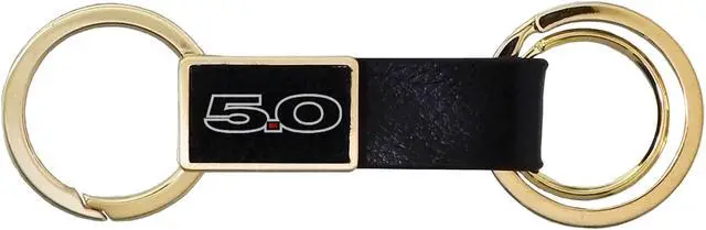 Fashion with style. One piece design has elegant look from every angle. Golden steel block with soft real black leather insert. It has full-color UV resistant OEM style car logo graphic. Black leather stripe with double rings for easy attach and release keys. Carabiner style snap hook on one end.