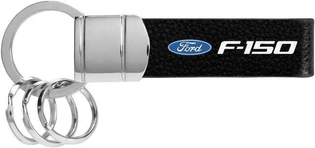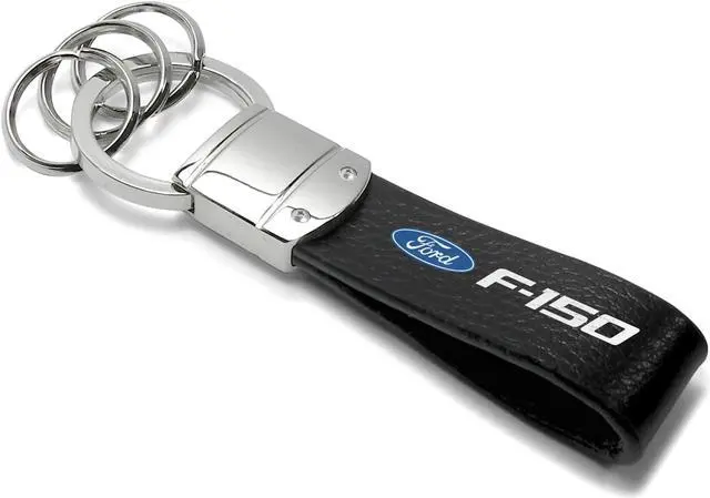 Ford F-150 Black Real Leather Strap Chrome Round Hook Metal Key Chain