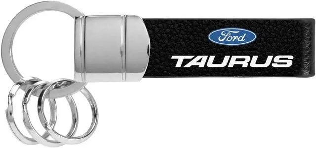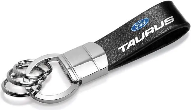 Ford Taurus Black Real Leather Strap Chrome Round Hook Metal Key Chain