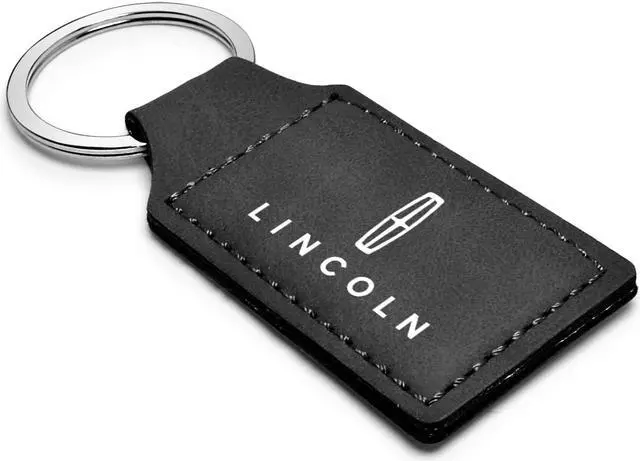 Lincoln Rectangular Black Leatherette Key Chain