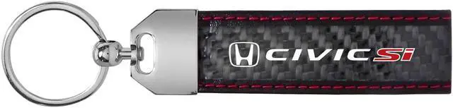 Honda Civic Si Real Black Carbon Fiber Loop Strap Key Chain with Red Stitching