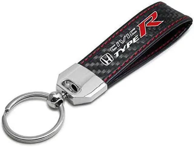 Honda Civic Type R Real Black Carbon Fiber Loop Strap Key Chain with Red Stitching