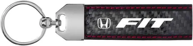 Honda Fit Real Black Carbon Fiber Loop Strap Key Chain with Red Stitching