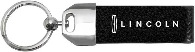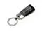 Fashion with style. One piece design has elegant look from every angle. Top grade soft black leather strip has full-color UV resistant OEM style car logo graphic. Chrome metal finish block has key rings for easy attach and release keys.