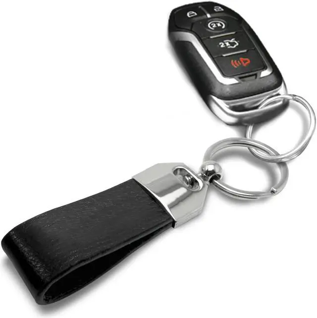 iPick Image - Large Genuine Black Leather Loop Strap Key Chain - Lincoln MKZ