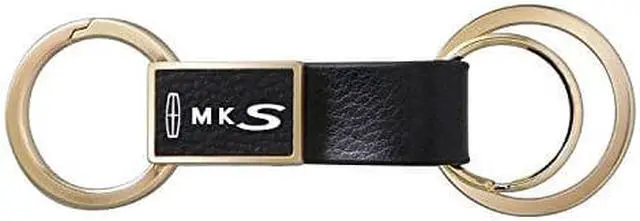 Lincoln MKS Round Hook Leather Strip Double Ring Golden Metal Key Chain