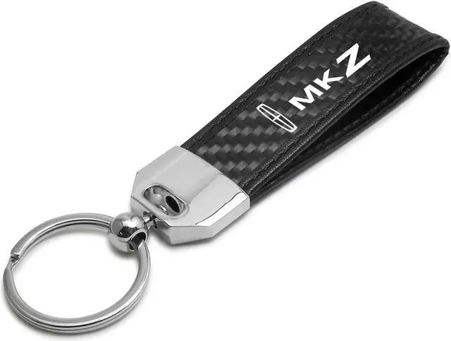 Lincoln MKZ Real Carbon Fiber Leather Strap Key Chain with Black stitching