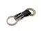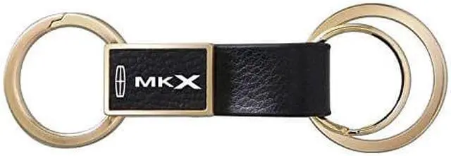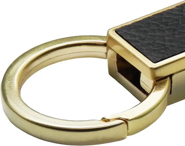 Fashion with style. One piece design has elegant look from every angle. Golden steel block with soft real black leather insert. It has full-color UV resistant OEM style car logo graphic. Black leather stripe with double rings for easy attach and release keys. Carabiner style snap hook on one end.