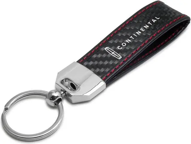 Lincoln Continental Real Black Carbon Fiber Loop Strap Key Chain with Red Stitching