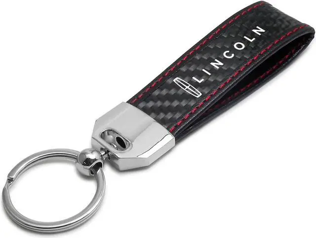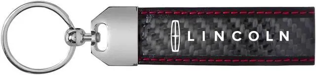 Lincoln Real Black Carbon Fiber Loop Strap Key Chain with Red Stitching