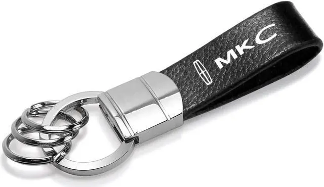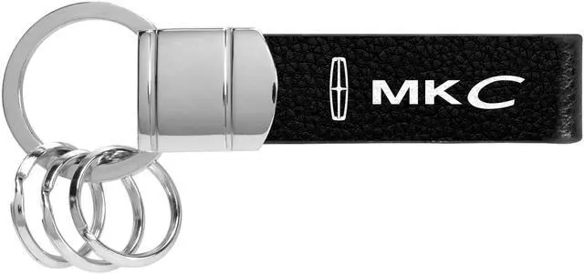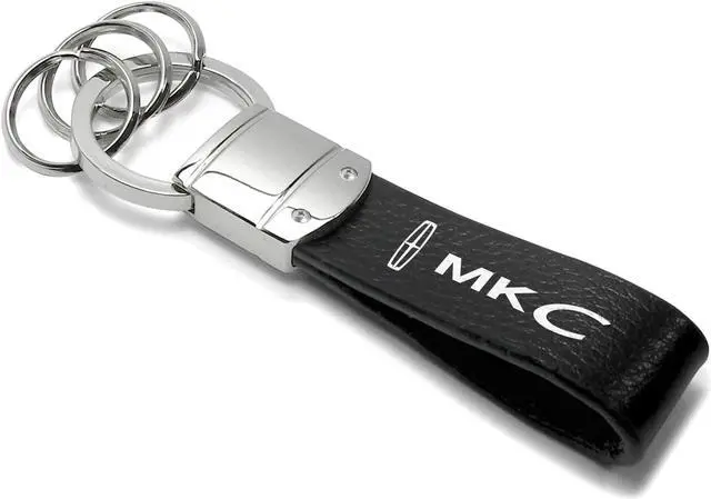 Lincoln MKC Black Real Leather Strap Chrome Round Hook Metal Key Chain