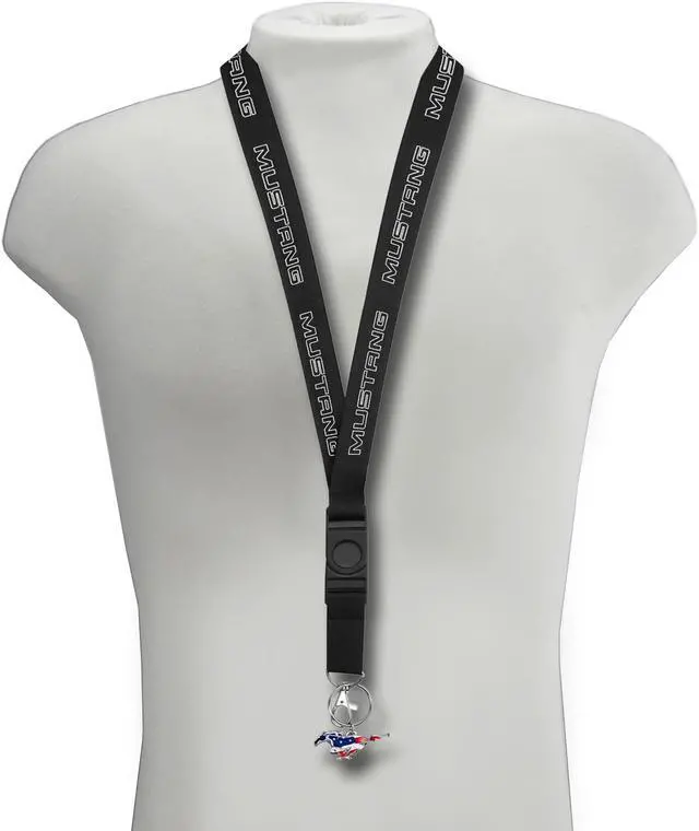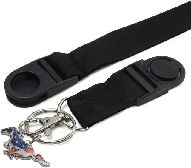 Ford Mustang Black Strap ID Holder Lanyard with 3D USA Flag Pony Metal Key Chain Charm