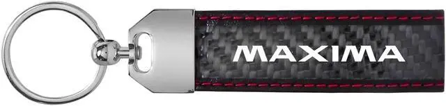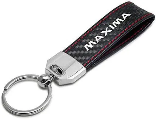 Nissan Maxima Real Black Carbon Fiber Loop Strap Key Chain with Red Stitching