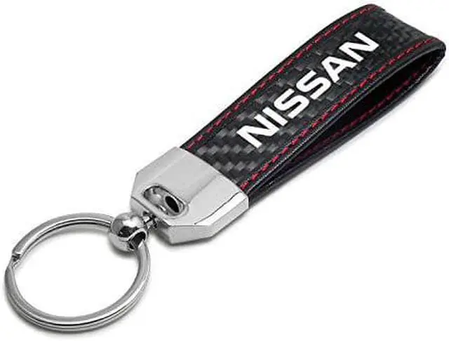 Nissan Real Black Carbon Fiber Loop Strap Key Chain with Red Stitching