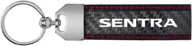 Nissan Sentra Real Black Carbon Fiber Loop Strap Key Chain with Red Stitching