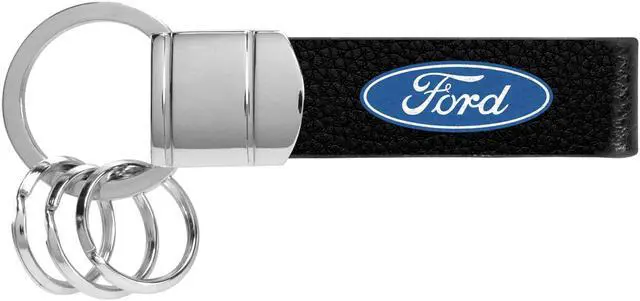 Ford Logo Black Real Leather Strap Chrome Round Hook Metal Key Chain