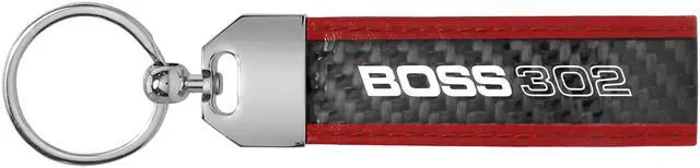 Ford Mustang Boss 302 Real Carbon Fiber Strap with Red Leather Stitching Edge Key Chain