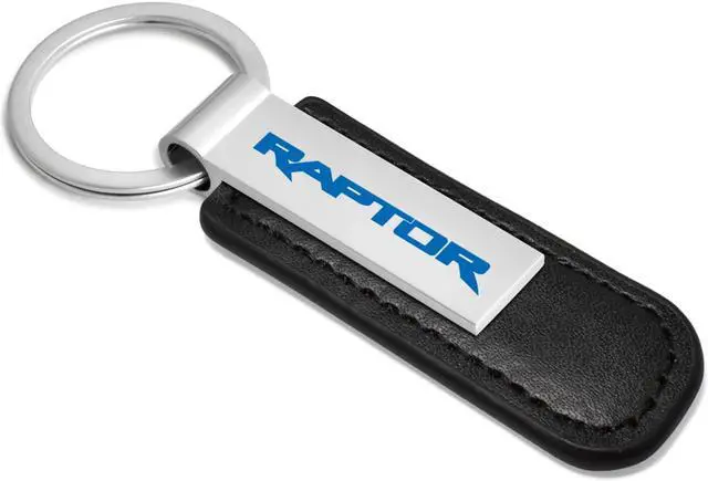 Ford F-150 Raptor 17 to 22 in Blue Silver Metal Black PU Leather Strap Key Chain