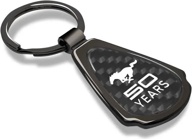 Ford Mustang 50 Years Real Black Carbon Fiber Gunmetal Black Metal Teardrop Key Chain