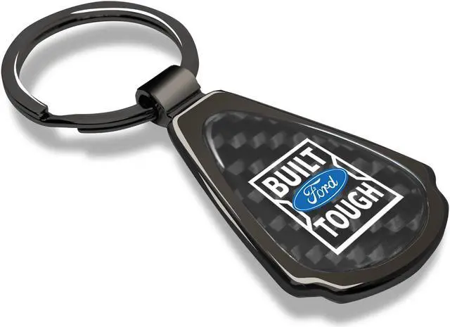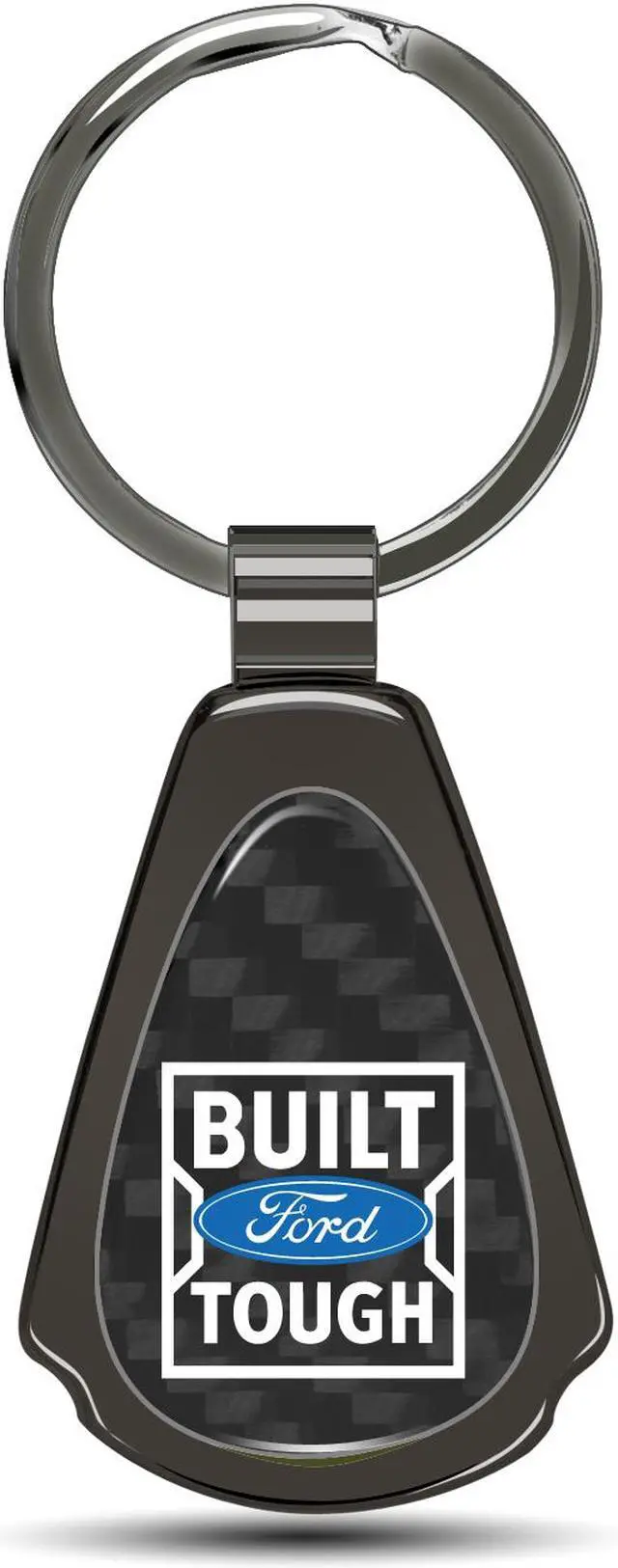 Ford Built-Ford-Tough Real Black Carbon Fiber Gunmetal Black Metal Teardrop Key Chain