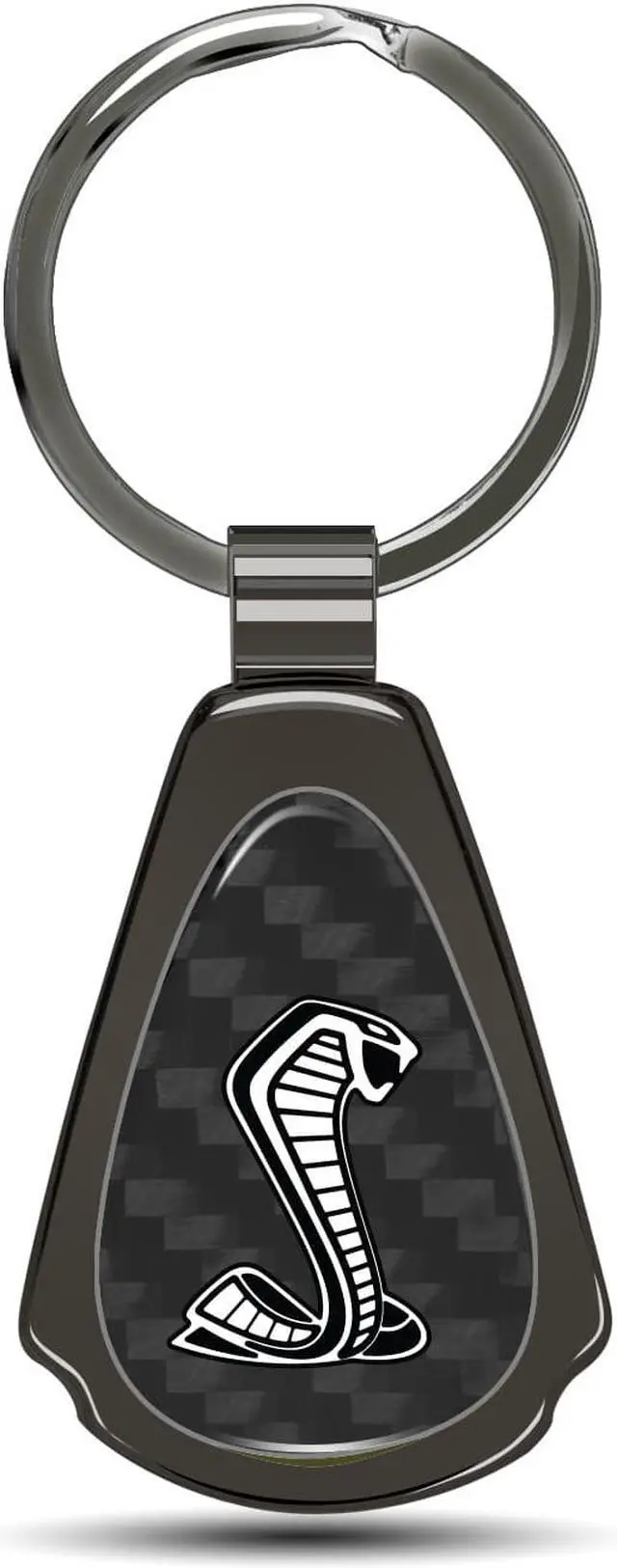 The tear-drop shaped pendant has a real carbon fiber insert with gunmetal chrome finished metal surround.