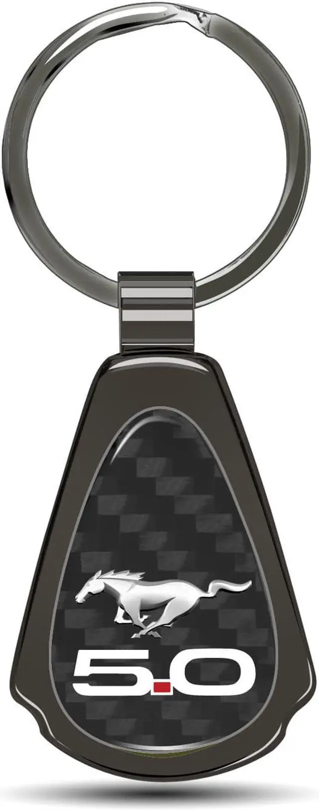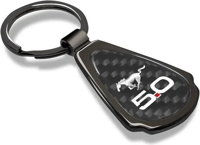Ford Mustang 5.0 Real Black Carbon Fiber Gunmetal Black Metal Teardrop Key Chain