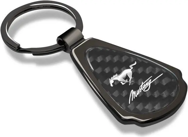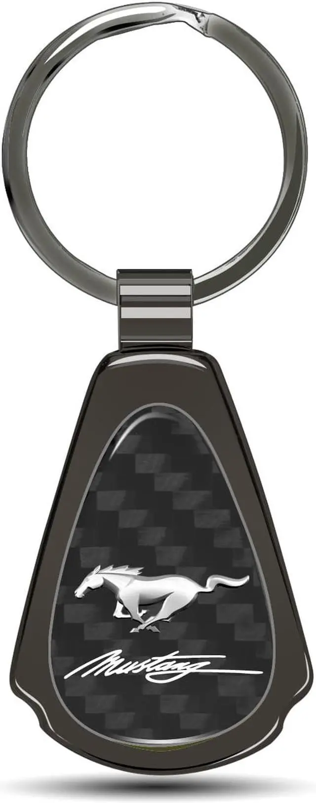 The tear-drop shaped pendant has a real carbon fiber insert with gunmetal chrome finished metal surround.